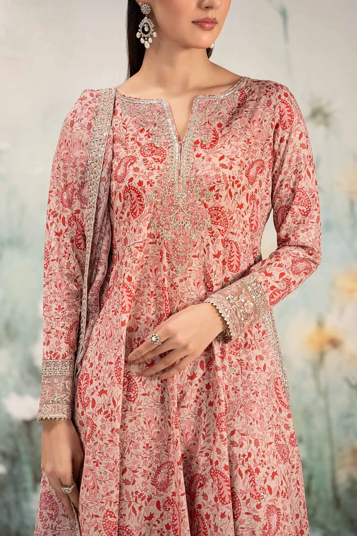 Spray Embroidered Sleeves With Organza Embroidered Border