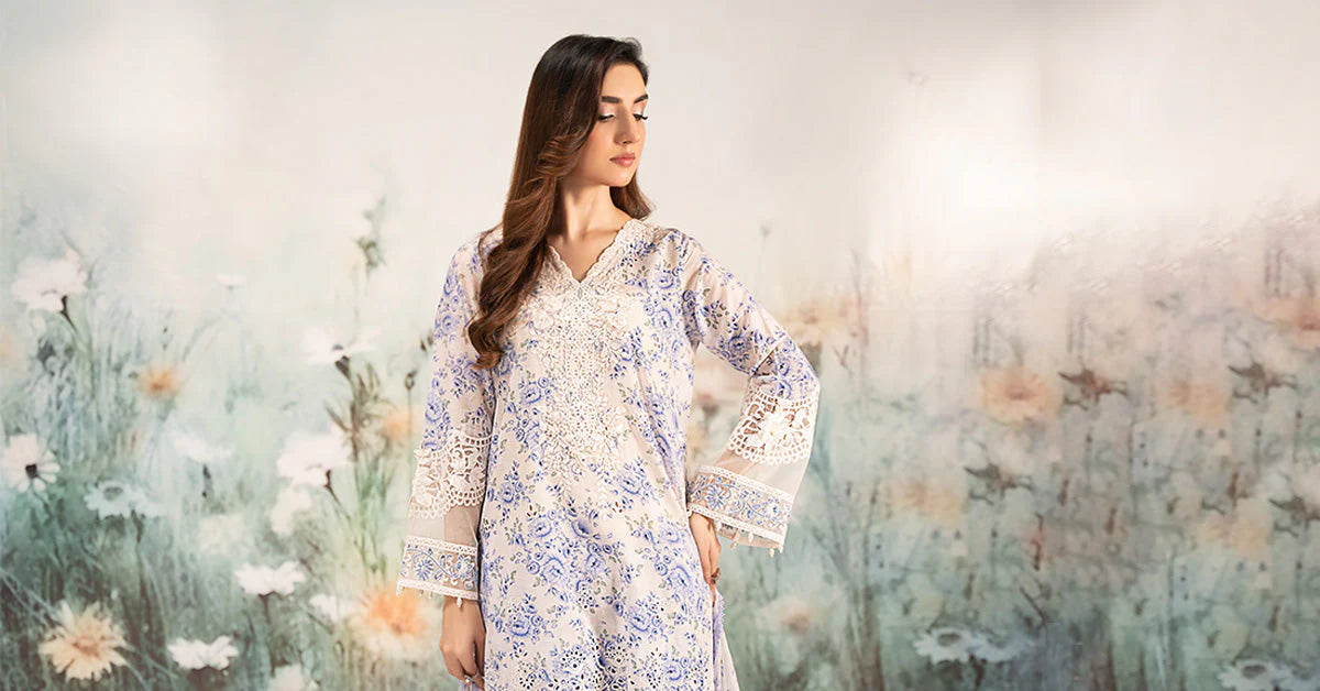 ShirtStraight Cut ShirtEmbroidered V Neckline With 3D Flowers DetailingPrinted Front With Schiffli EmbroideryScalloped Border With Boring EmbroideryFull...