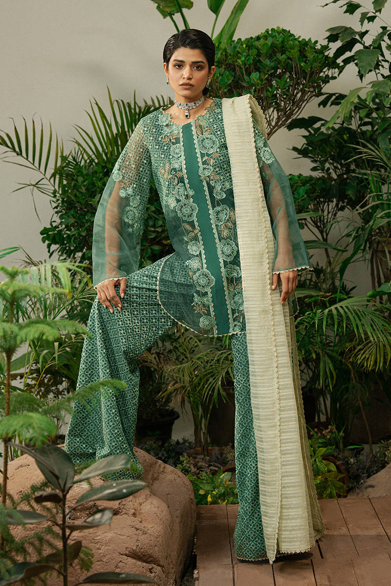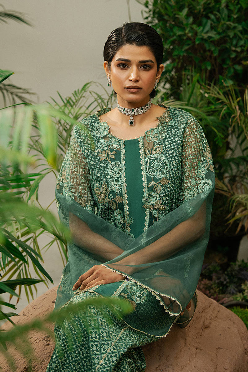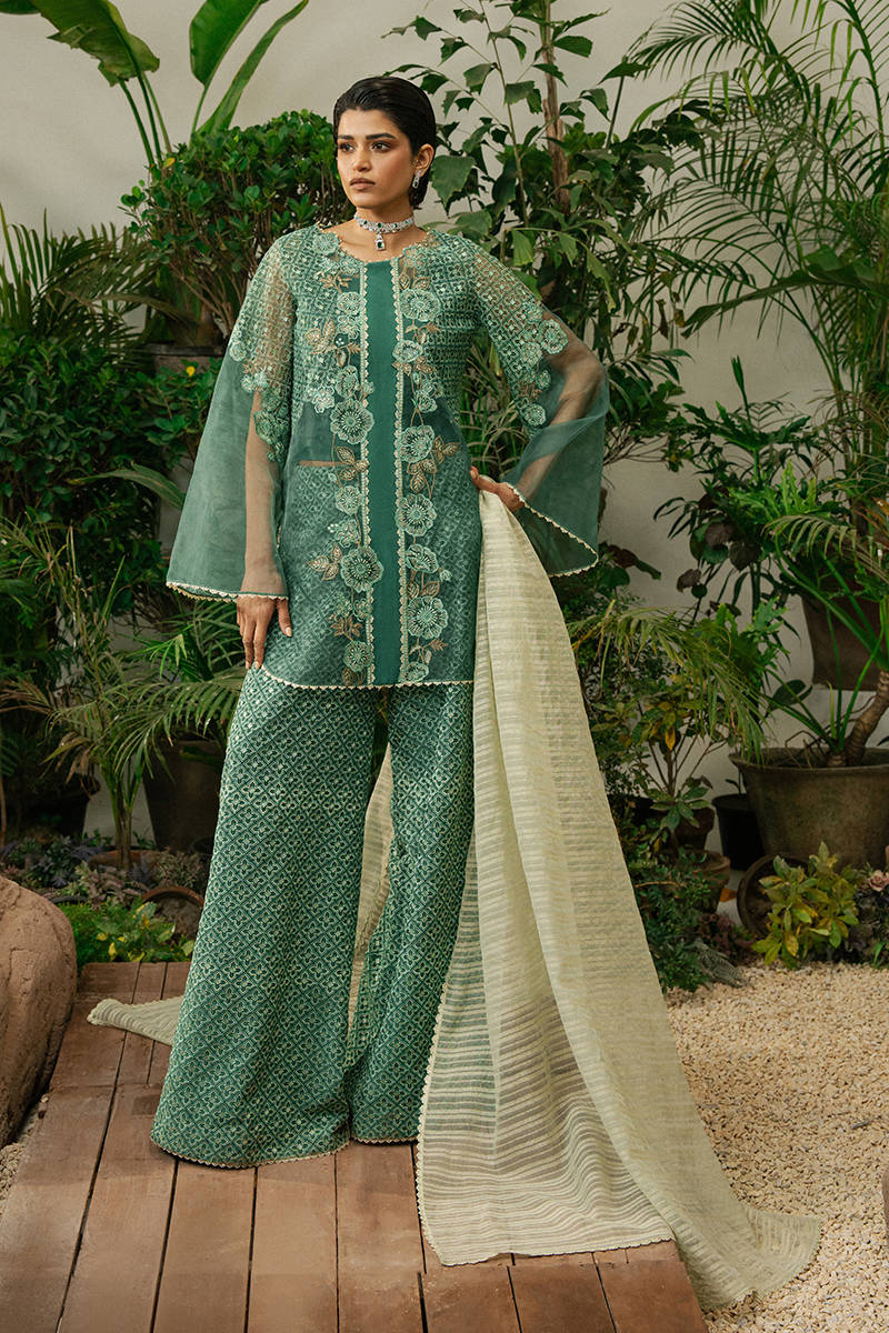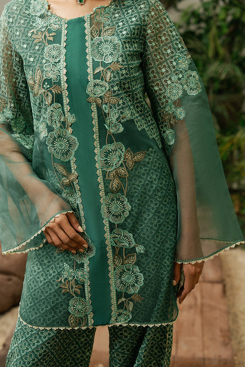 PRODUCT DETAILS SKU: FG-610 Design Code: FG-610 A sage green embroidered organza shirt with a faux-jacket effect, detailed with...