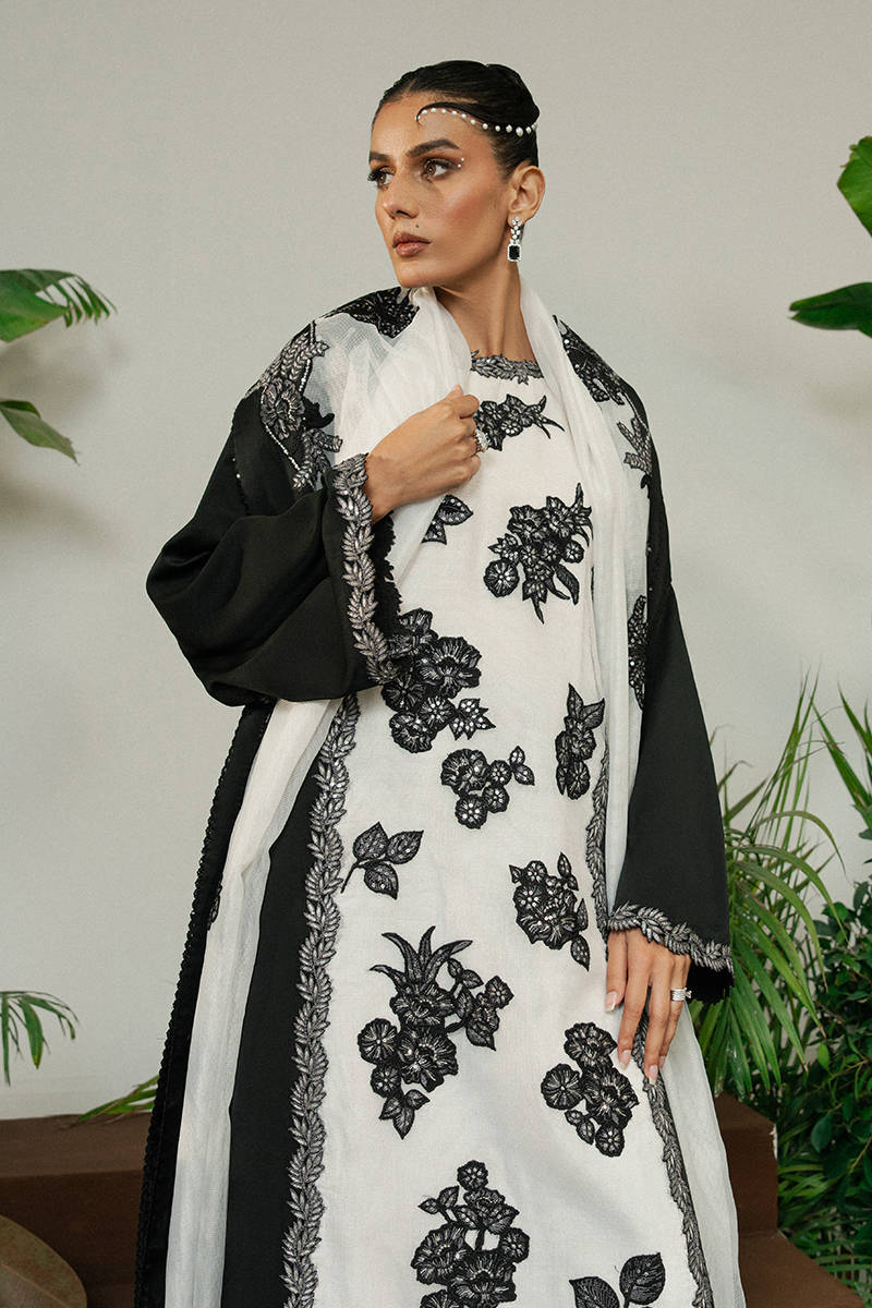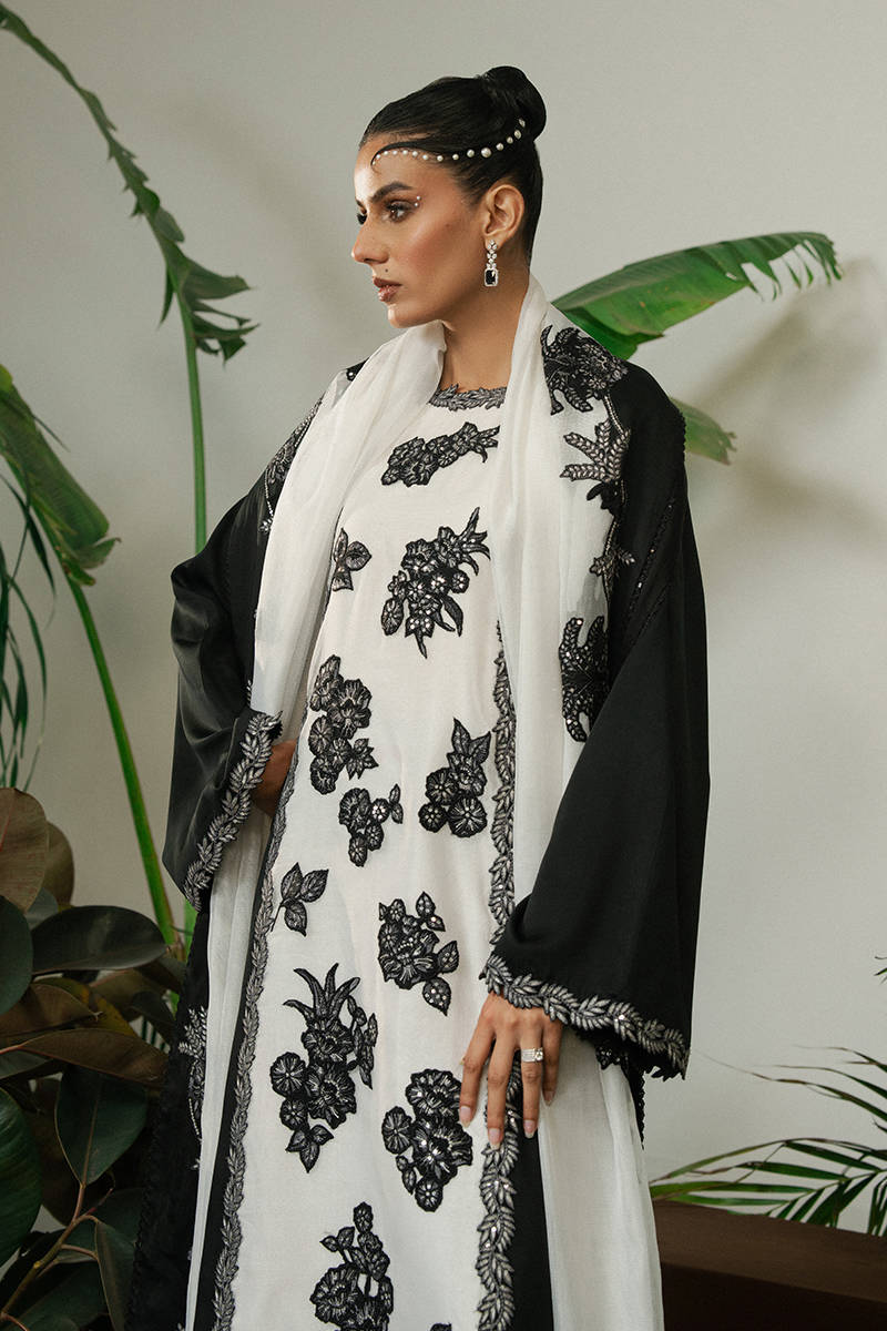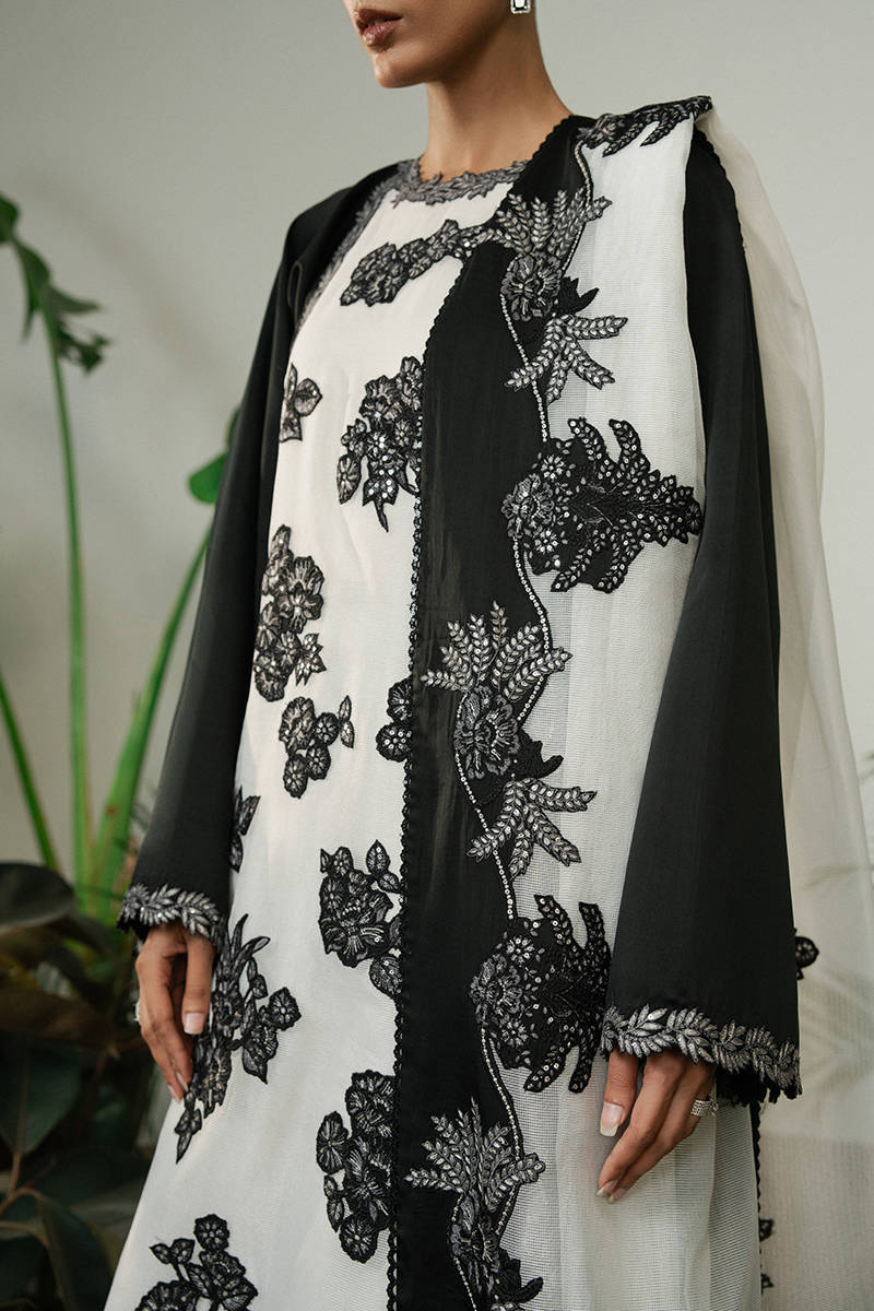 PRODUCT DETAILS SKU: FW-427 Design Code: FW-427 A black and white satin silk shirt featuring a check organza middle...