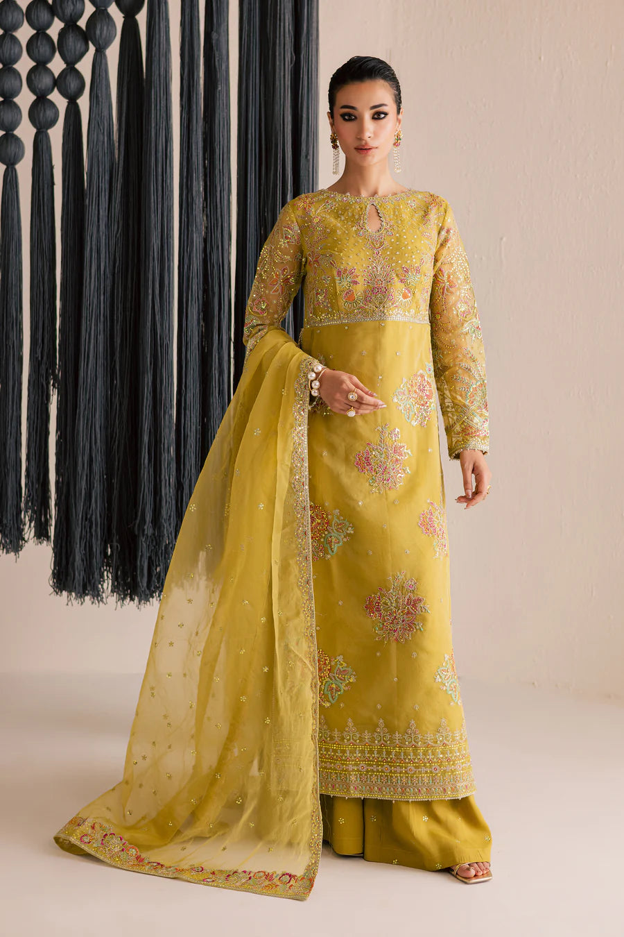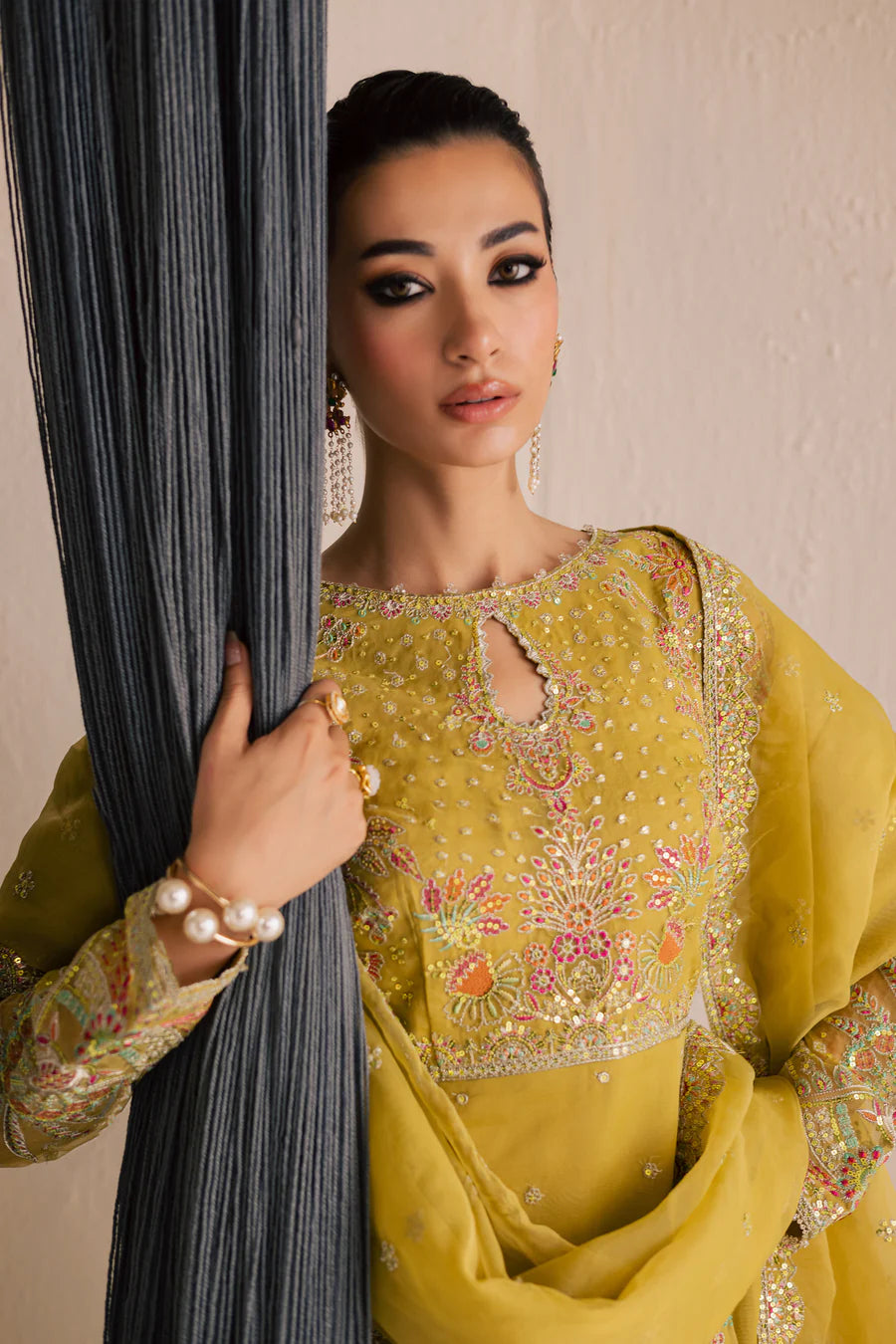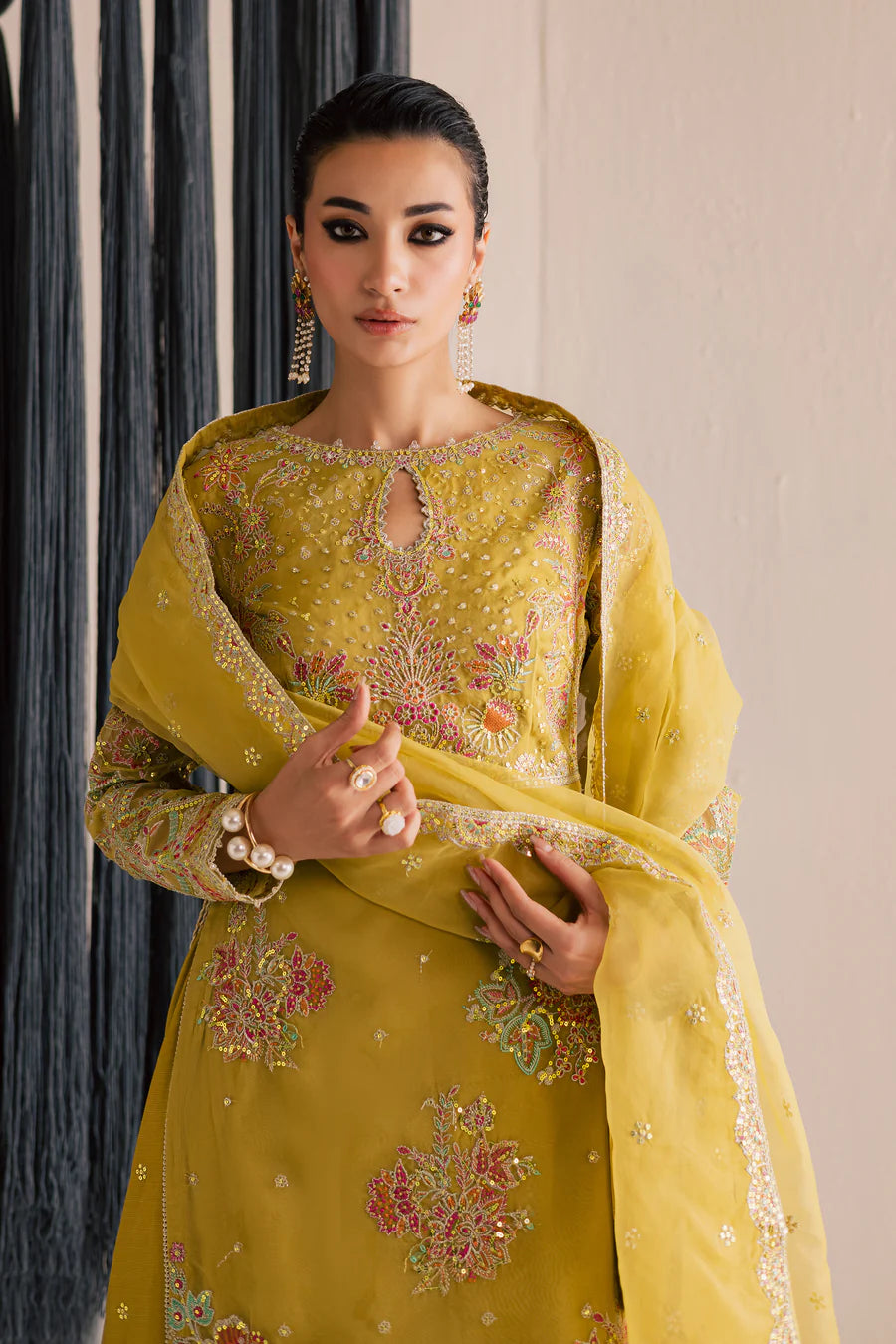 A delicately embroidered organza dupatta completes the outfit, adding lightness and refined charm through its fine craftsmanship.